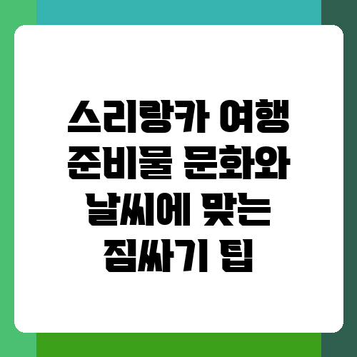 스리랑카 여행, 설레는 마음으로 떠나시나요? 하지만 낯선 문화와 다양한 날씨에 어떤 옷을 챙겨야 할지 고민이시라면 이 글이 도움이 될 거예요. 저는 스리랑카 여행을 다녀온 경험을 바탕으로, 여행의 즐거움을 더욱 풍성하게 만들어줄 짐 싸는 팁을 알려드리려고 합니다. 꼼꼼하게 준비해서 후회 없는 여행을 만들어 보세요!