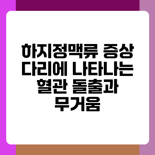 다리에 핏줄이 울퉁불퉁 튀어나오고, 묵직한 무거움에 시달리고 계신가요? 혹시 하지정맥류를 의심하고 계신 건 아닌지 걱정이시라면, 이 글이 도움이 될 거예요. 하지정맥류는 생각보다 흔한 질환이지만, 방치하면 더 큰 문제로 이어질 수 있으니 제대로 알고 관리하는 것이 중요해요. 오늘은 하지정맥류의 대표적인 증상인 다리 혈관 돌출과 무거움에 대해 자세히 알아보고, 예방 및 관리 방법까지 함께 살펴보도록 하겠습니다. 여러분의 건강한 다리를 위한 정보가 되길 바랍니다.