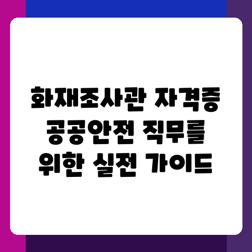 화재조사관이 되는 꿈을 꾸고 계신가요? 혹은 안전한 사회를 만드는데 기여하고 싶은 마음이 있으신가요? 화재는 예측 불가능한 재앙이지만, 사전 예방과 전문적인 조사를 통해 피해를 최소화할 수 있다는 사실, 알고 계셨나요? 이 글에서는 화재조사관 자격증 취득 과정부터 공공안전 직무에서의 역할까지, 실제 경험과 정보를 바탕으로 자세히 알려드리겠습니다. 여러분의 꿈을 현실로 만들 수 있도록 꼼꼼하게 안내해 드릴 것을 약속드립니다.