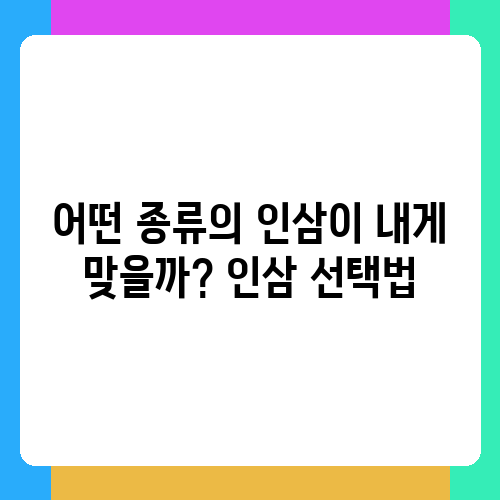 인삼에는 여러 종류가 있습니다. 홍삼, 백삼, 태극삼 등 다양한 종류의 인삼이 있으며, 각각의 효능과 특징이 조금씩 다릅니다. 어떤 종류의 인삼이 자신에게 맞는지 잘 알아보고 선택하는 것이 중요합니다. 예를 들어, 홍삼은 면역력 강화에 효과적이라고 알려져 있으며, 백삼은 열을 내리는 데 도움이 된다고 합니다. 따라서 자신의 건강 상태와 목적에 맞는 인삼을 선택하는 것이 중요하며, 필요하다면 전문가와 상담을 통해 선택하는 것도 좋은 방법입니다. 저도 처음에는 어떤 인삼을 선택해야 할지 몰라서 많은 정보를 찾아보았어요.