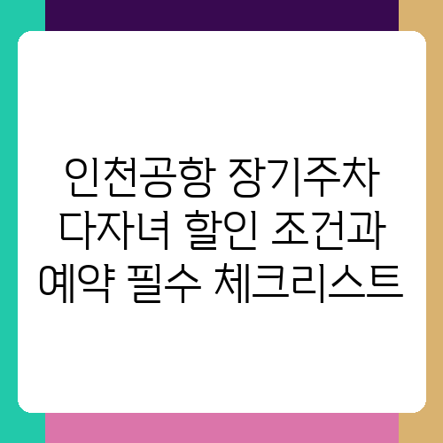 인천공항 장기주차를 이용하시는 분들 중, 다자녀 가정이라면 놓칠 수 없는 혜택이 있습니다. 바로 다자녀 할인! 하지만 어떤 조건을 충족해야 할인을 받을 수 있는지, 예약 시 어떤 점을 체크해야 하는지 궁금하시죠? 이 글에서는 인천공항 장기주차 다자녀 할인 조건과 예약 시 꼭 확인해야 할 체크리스트를 자세히 알려드리겠습니다. 여행 전 꼼꼼히 확인하셔서 알뜰하게 주차비를 절약하세요!