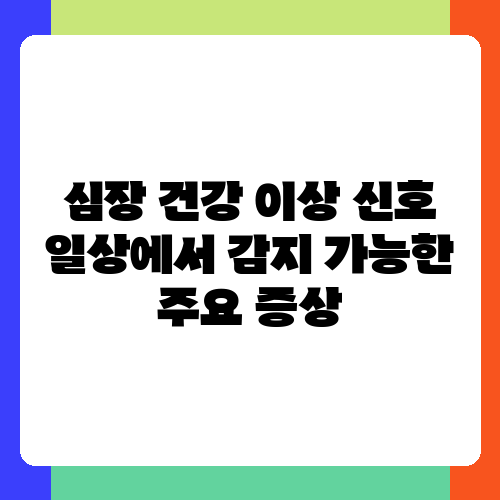지금까지 심장 건강 이상 신호를 일상에서 감지할 수 있는 주요 증상들을 살펴보았습니다. 이러한 증상들이 나타난다고 모두 심장 질환을 의미하는 것은 아니지만, 절대 방심해서는 안 됩니다. 몸이 보내는 작은 신호에 귀 기울이고, 평소 건강한 생활 습관을 유지하며, 정기적인 건강 검진을 통해 심장 건강을 꾸준히 관리하는 것이 중요합니다. 건강한 심장으로 행복한 삶을 누리시길 바랍니다! 혹시 궁금한 점이 있으시다면 언제든지 질문해주세요.