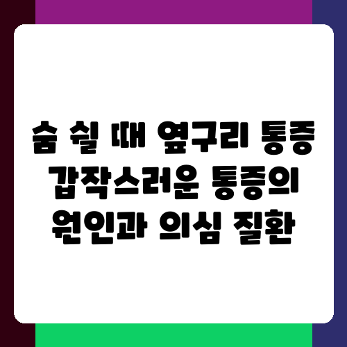 숨을 쉴 때마다 옆구리가 콕콕 쑤시는 듯한 통증, 경험해 보셨나요? 가볍게 생각하고 넘기기 쉬운 증상이지만, 원인을 제대로 파악하지 못하면 만성 통증으로 이어질 수도 있다는 사실, 알고 계셨나요? 이 글에서는 숨을 쉴 때 옆구리 통증을 유발하는 다양한 원인과 함께, 어떤 질환을 의심해야 하는지, 그리고 어떻게 대처해야 하는지 자세하게 알려드리겠습니다. 혹시 지금 옆구리 통증으로 고민 중이라면, 이 글이 큰 도움이 될 거예요.