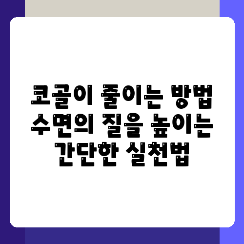 밤새도록 잠 못 이루게 하는 코골이, 정말 힘드시죠? 옆 사람 뿐 아니라 본인도 숙면을 취하기 어렵고, 건강에도 좋지 않다는 사실 알고 계시나요? 코골이는 단순한 수면 장애를 넘어 심혈관 질환, 당뇨병과 같은 만성 질환의 위험을 높일 수 있다고 합니다. 하지만 걱정 마세요! 오늘은 여러분의 수면의 질을 높이고 코골이를 줄이는 데 도움이 되는 간단한 실천법들을 소개해 드리겠습니다. 지금부터 차근차근 따라 해보시면, 밤잠 편하게 주무실 수 있을 거예요.
