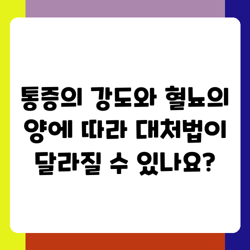 통증의 강도와 혈뇨의 양에 따라 대처법이 달라질 수 있나요?