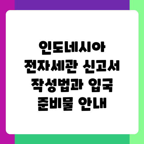 인도네시아 여행, 설레는 마음으로 떠나셨나요? 하지만 낯선 나라의 입국 절차 때문에 걱정이 앞서기도 하죠. 특히 전자세관 신고서는 꼼꼼하게 작성해야 하는 중요한 서류입니다. 이 글에서는 인도네시아 전자세관 신고서 작성 방법부터 입국 시 필요한 준비물까지, 여행 전 알아두면 정말 유용한 정보들을 쉽고 자세하게 알려드릴게요. 여행의 시작부터 순조롭게 만들어 줄 완벽 가이드를 함께 살펴봐요!