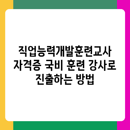 직업능력개발훈련교사 자격증을 취득하고 국비 훈련 강사로 활동하고 싶으신가요? 많은 분들이 꿈꾸는 안정적인 직업이지만, 실제로 어떻게 진출해야 할지 막막하게 느껴지실 수도 있습니다. 자격증 취득 후 성공적인 강사 경력을 쌓기 위해서는 체계적인 준비와 전략이 필요해요. 이 글에서는 직업능력개발훈련교사 자격증을 가지고 국비 훈련 강사로 성공적으로 진출하는 방법을 자세히 알려드리겠습니다. 여러분의 꿈을 현실로 만들 수 있도록 실질적인 정보들을 꼼꼼하게 정리했으니, 끝까지 읽어보세요.