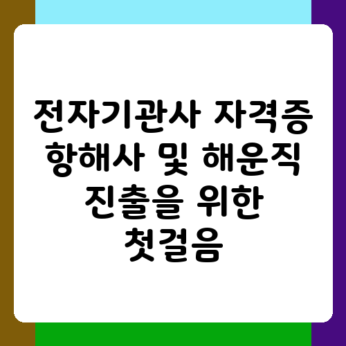 전자기관사 자격증을 취득하고 해운업계에 진출하고 싶으신가요? 바다를 향한 꿈을 가지고 계신 분들에게 전자기관사는 매력적인 직업입니다. 하지만 어디서부터 시작해야 할지 막막하실 수도 있어요. 이 글에서는 전자기관사 자격증 취득부터 해운직 진출까지, 여러분의 꿈을 현실로 만들어 드릴 첫걸음을 안내해 드리겠습니다. 저와 함께 해운업계 진출의 든든한 디딤돌을 마련해 보세요.