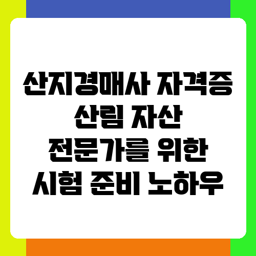 산림 자산의 가치가 날로 높아지는 요즘, 산지경매사는 뜨거운 직업으로 떠오르고 있습니다. 산림과 관련된 다양한 자산을 전문적으로 다루는 산지경매사가 되기 위해서는 탄탄한 전문 지식과 실무 경험이 필수적인데요. 하지만 어디서부터 어떻게 준비해야 할지 막막하게 느껴지는 분들도 많을 거예요. 이 글에서는 산지경매사 자격증 시험에 효과적으로 대비하는 방법을 알려드리겠습니다. 자신만의 효율적인 학습 전략을 세워 꿈을 이루도록 도와드릴게요!