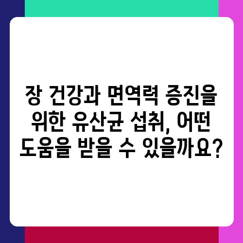 장 건강과 면역력 증진을 위한 유산균 섭취, 어떤 도움을 받을 수 있을까요?